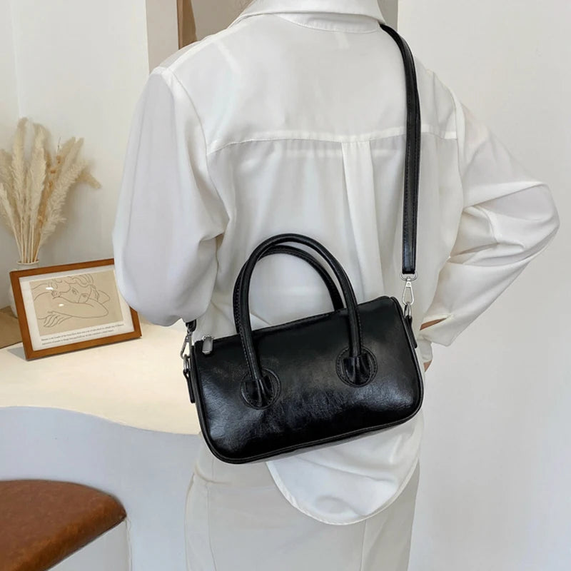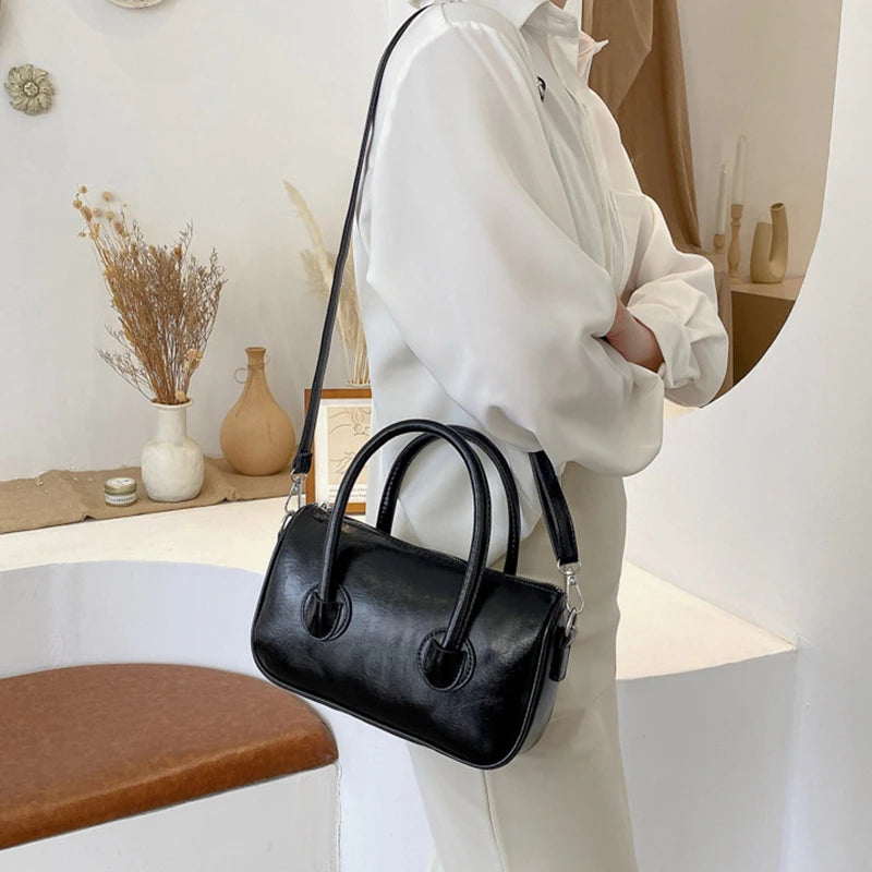 Soft-Faced PU Zipper Handbag Women Solid Square Diagonal Bag
