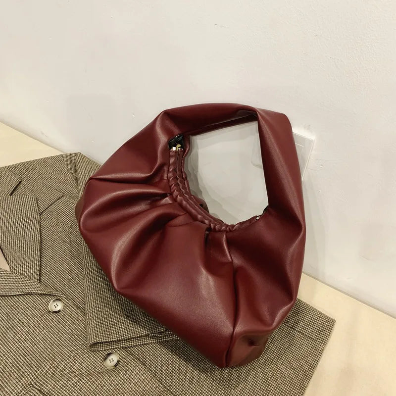 This stylish cloud bag is made of soft leather, perfect for everyday use. It can be worn as a shoulder purse or a crossbody bag.