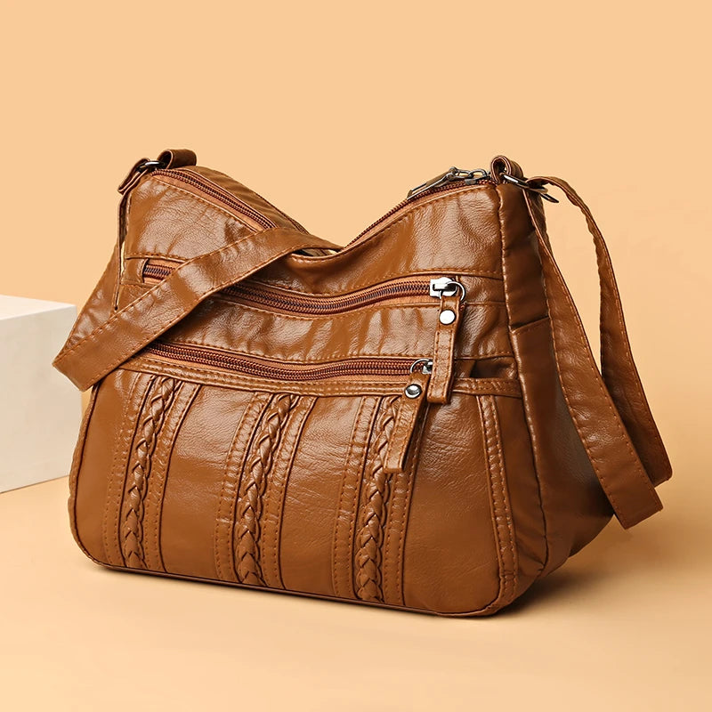 Soft Leather Shoulder Bag Casual Crossbody Bag For Women