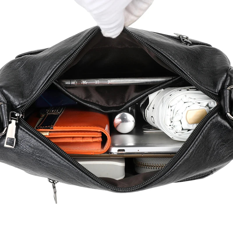 Soft Leather Shoulder Tote Handbag