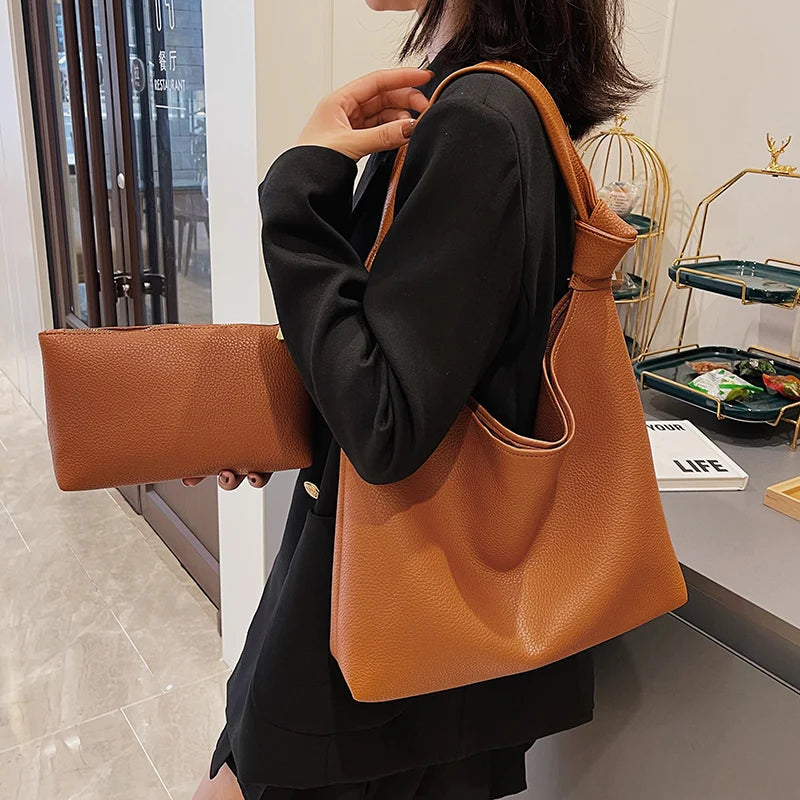 Soft Leather Women Bag Knotted Shoulder Handbag Tote Large Capacity
