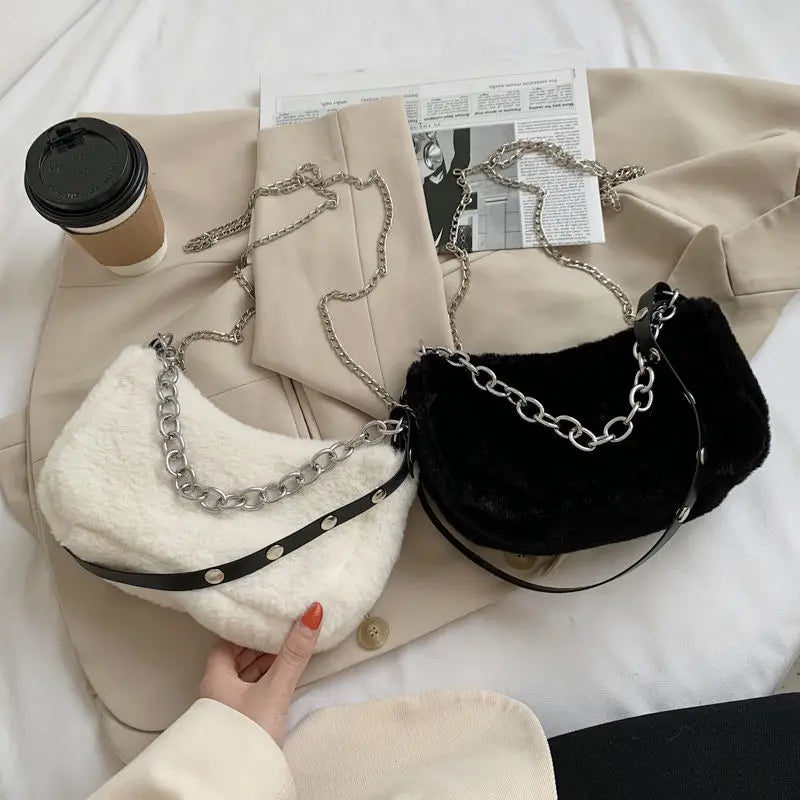 Soft Plush Women Shoulder Messenger Bag Furry Crossbody Chain Purse Handbag
