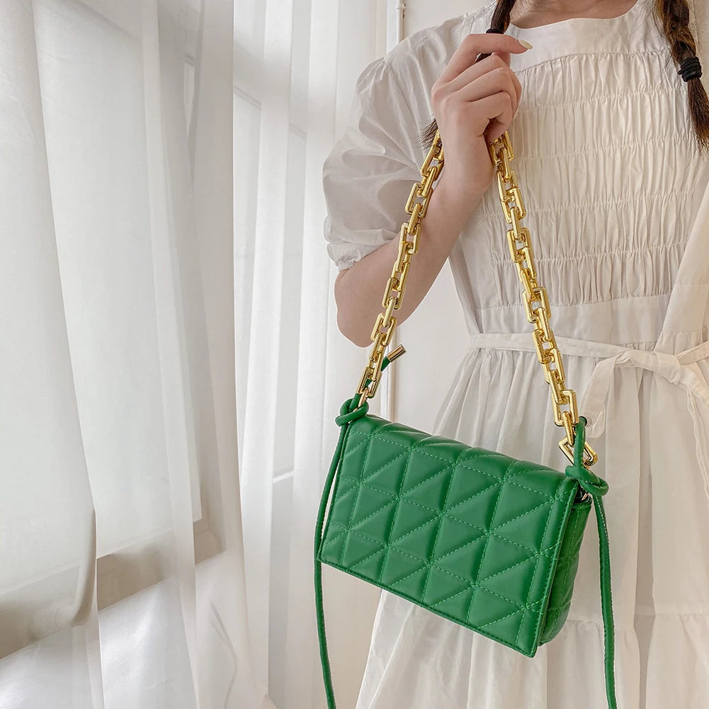Soft Pu Leather Chain Shoulder Bag Green Clutch Tote Bags for Women