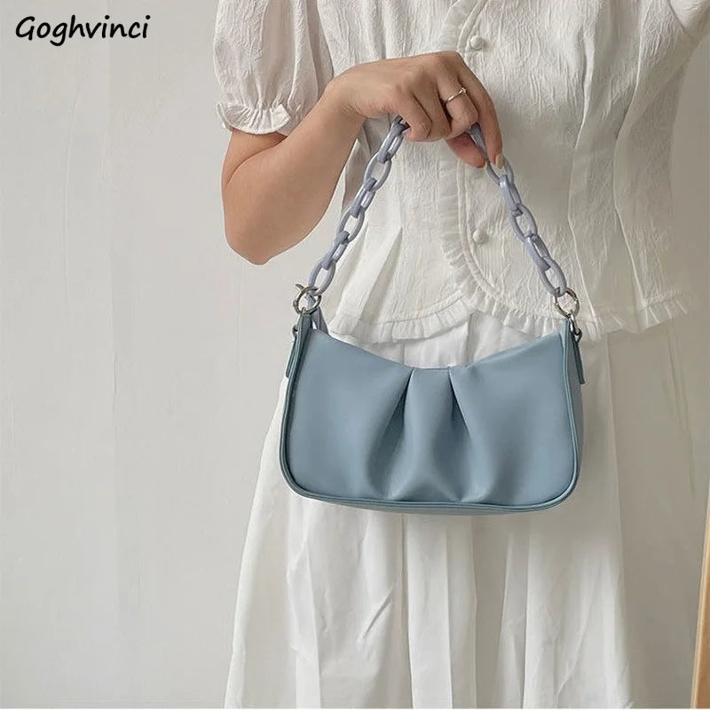 This pleated shoulder bag is made of soft PU leather, perfect for everyday use. It features a stylish underarm design with crossbody chains, ideal for ladies and girls.