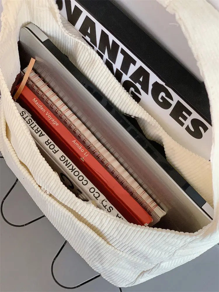 This shoulder bag is perfect for school, couple, or everyday use. Made of corduroy with a large capacity, it is a versatile and stylish accessory. The design is inspired by Japan's casual totes, making it a trendy choice for any occasion.