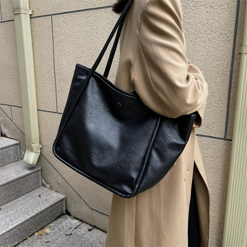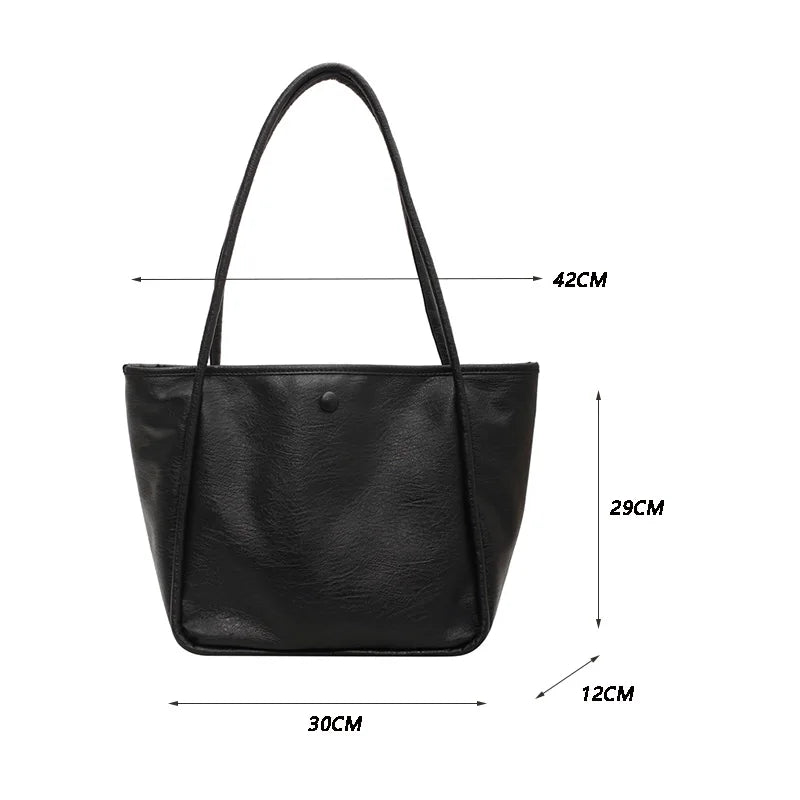 Solid PU Leather Shoulder Tote Bag Large Capacity Tote