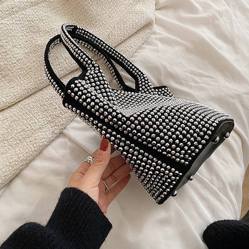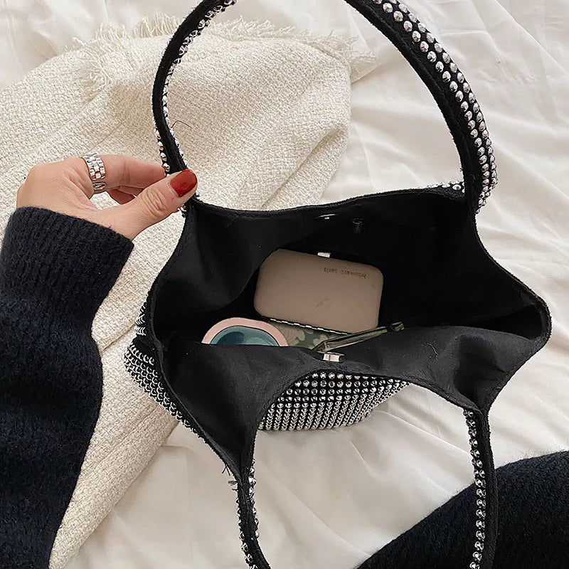 Make a glamorous statement with this stunning rhinestone evening clutch handbag. Perfect for special occasions, this elegant accessory will add a touch of sparkle to your outfit.