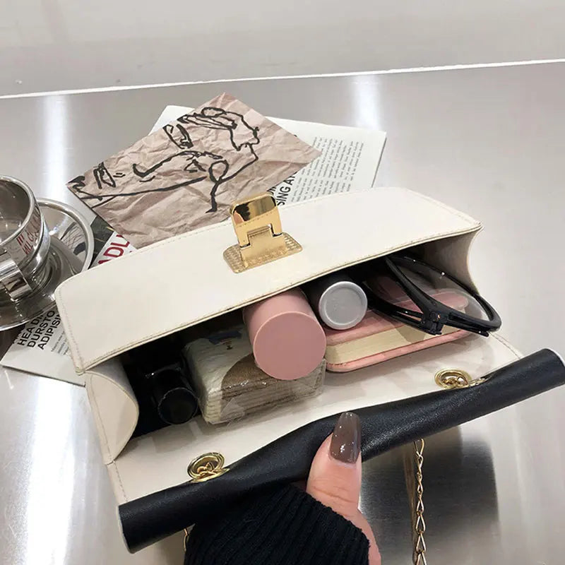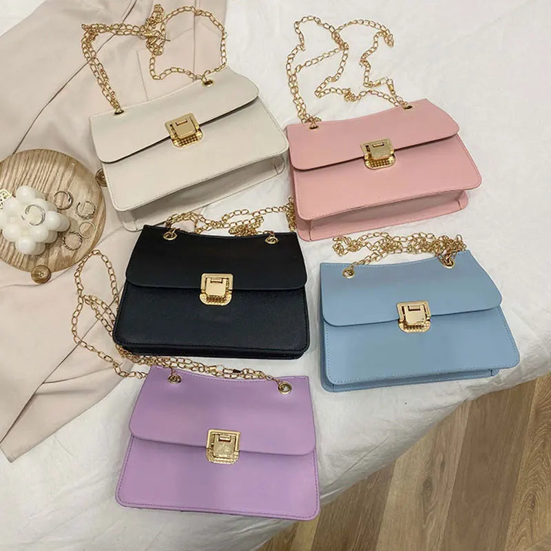 This stylish small square bag is perfect for spring, made of high-quality PU leather. It features a chain design and can be used as a crossbody bag or purse.