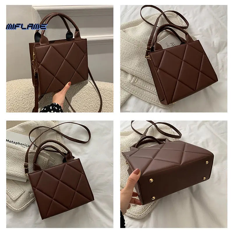 Spring Plaid Crossbody Bag PU Leather Top Handle Handbag
