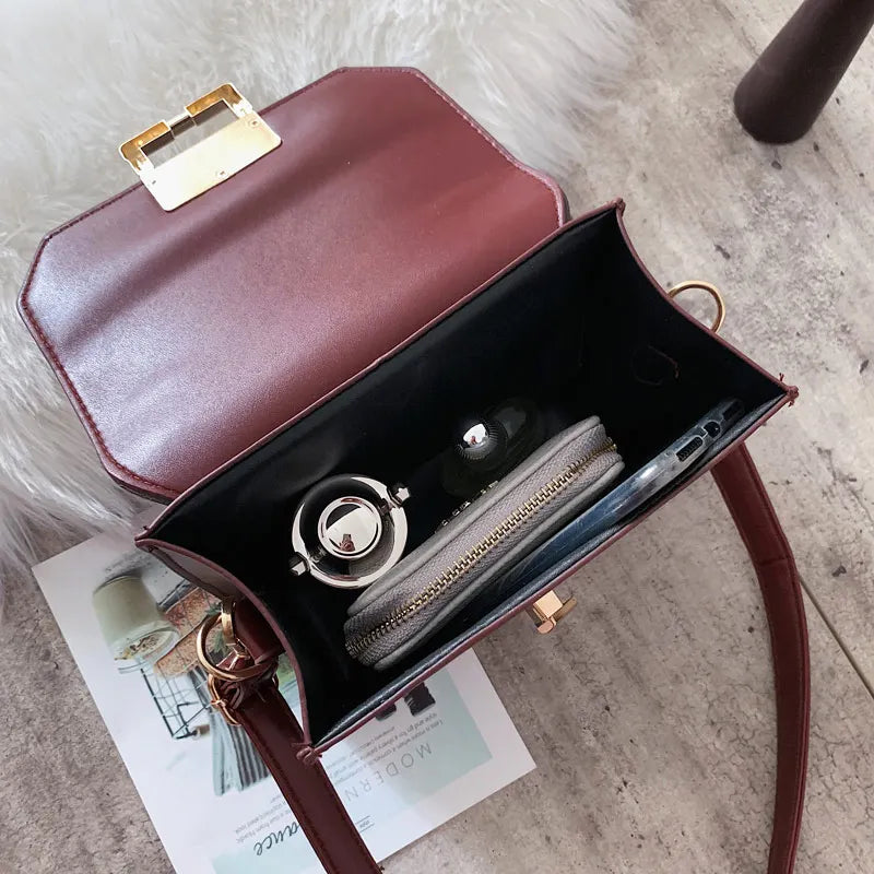 Square Shoulder Bag Women's Handbag Metal Lock Winter Messenger Crossbody Purse