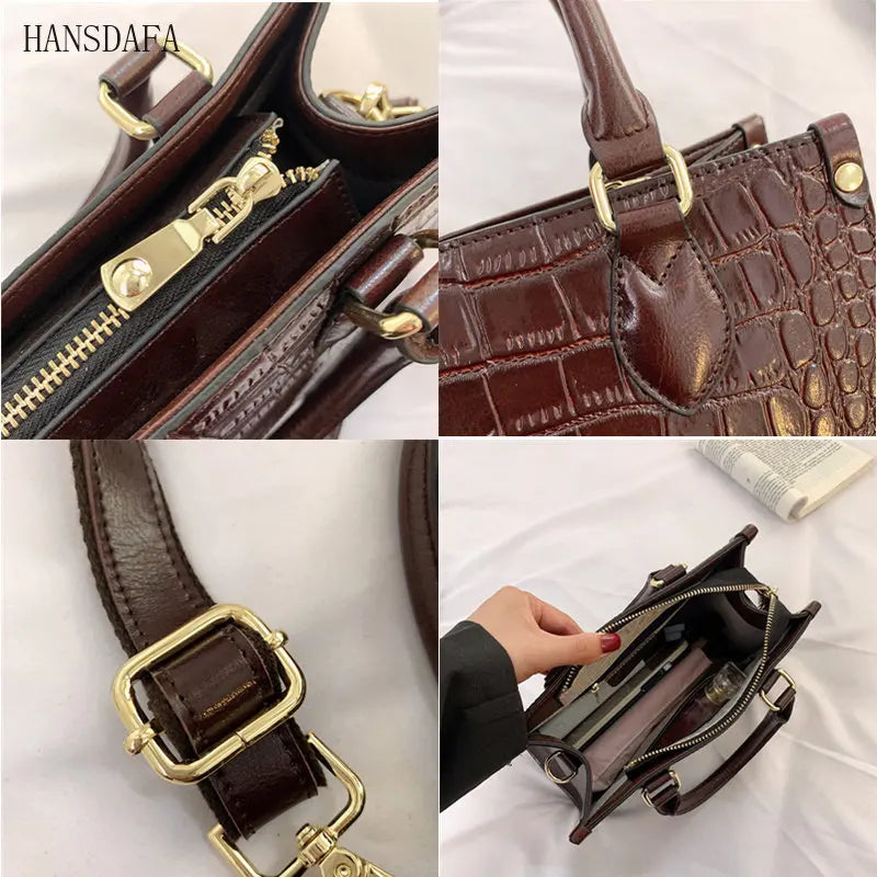 Stone Pattern Cow Leather Handbag for Women Large Capacity Tote Bag
