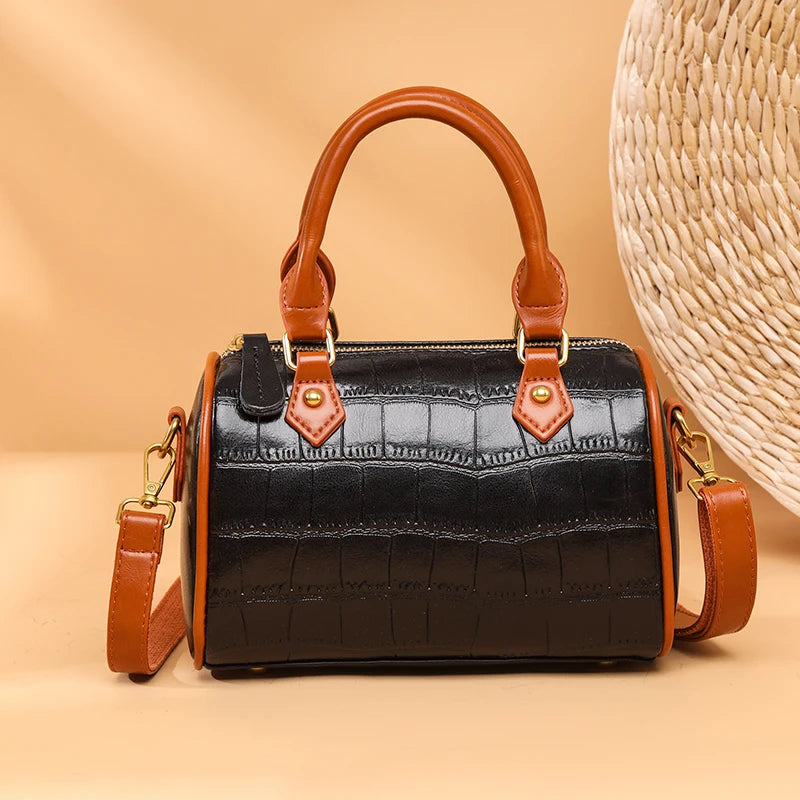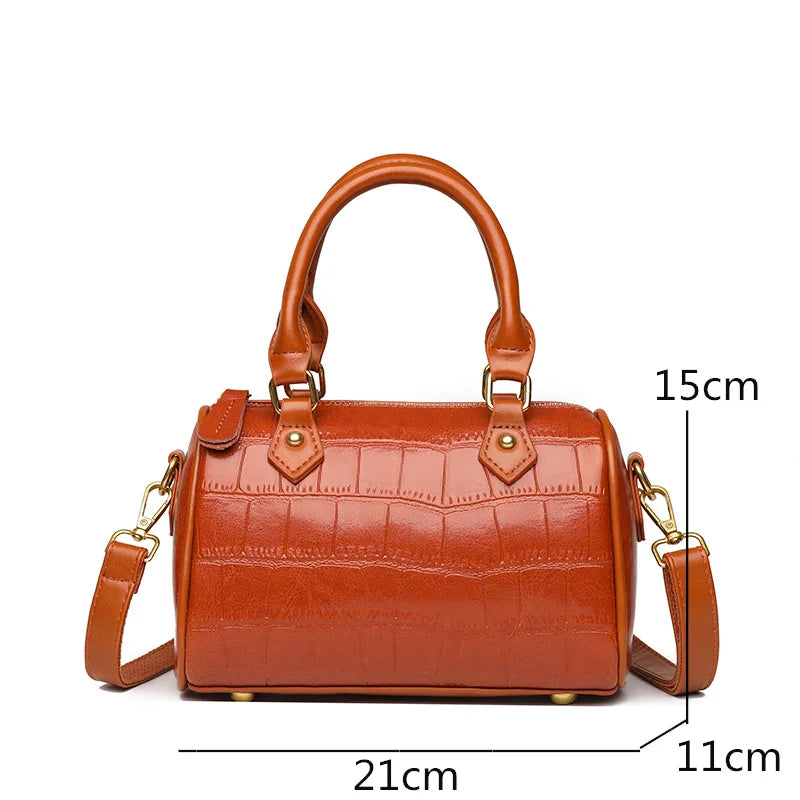 Stone Pattern Leather Handbag Women's Bag Vintage Cow Leather