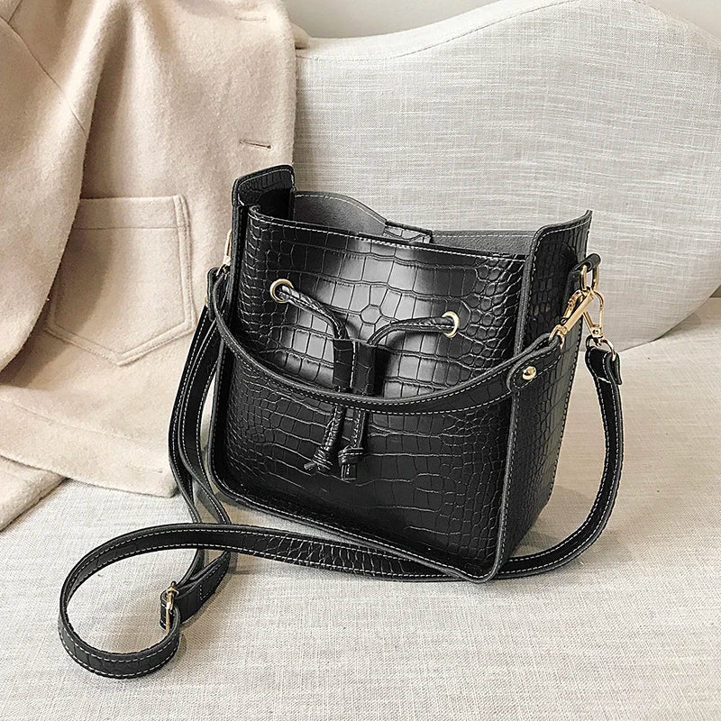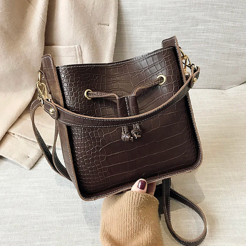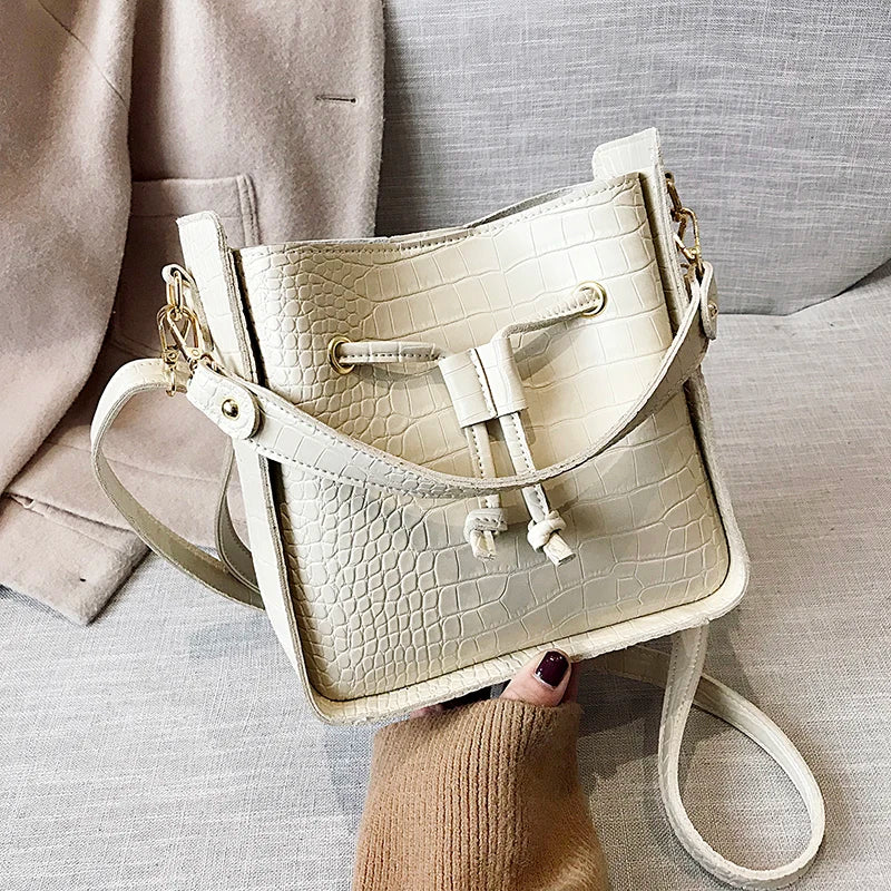 Stone Pattern PU Leather Bucket Bag Women Small Shoulder Messenger Handbag