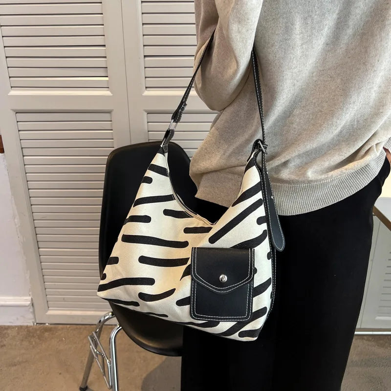 Striped Canvas Side Bag For Women Large Capacity Handbags