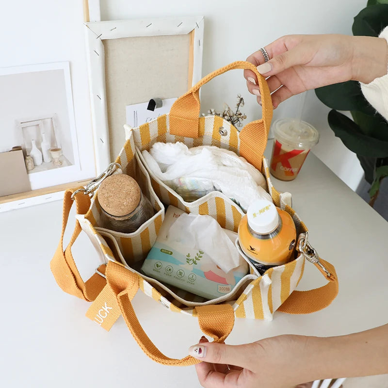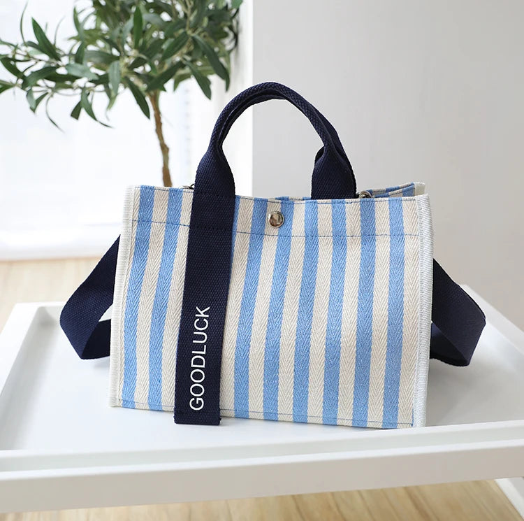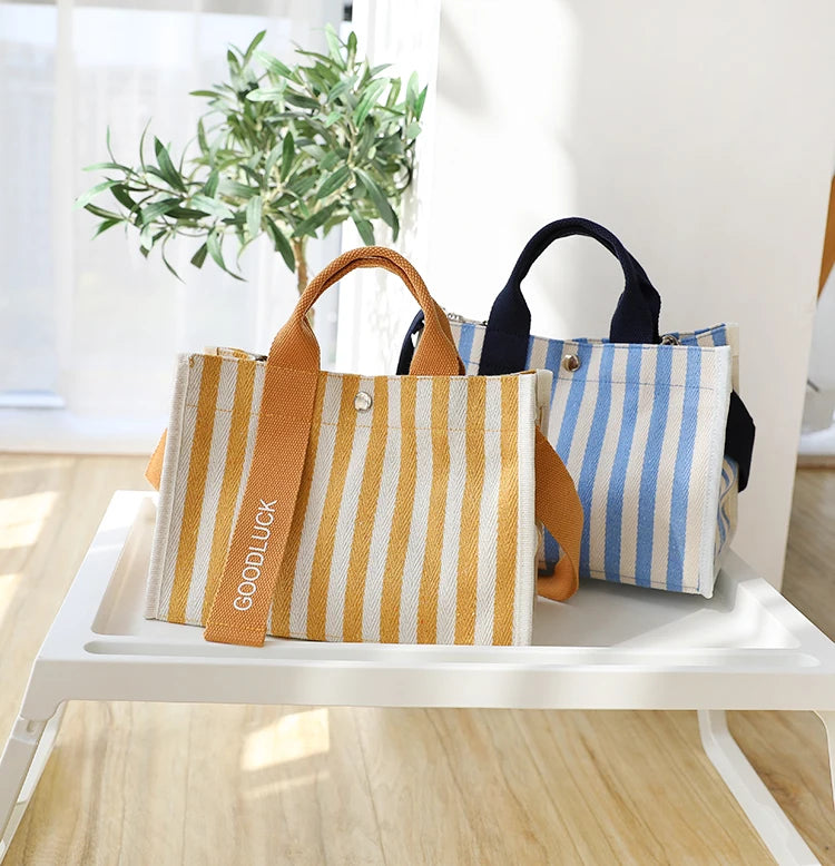 Striped Canvas Small Square Handbag Waterproof Tote Bag