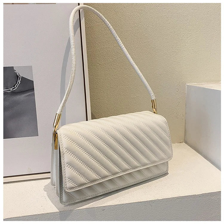 Striped Shoulder Bag Solid Pu Leather Lady Handbag Casual Women Bags