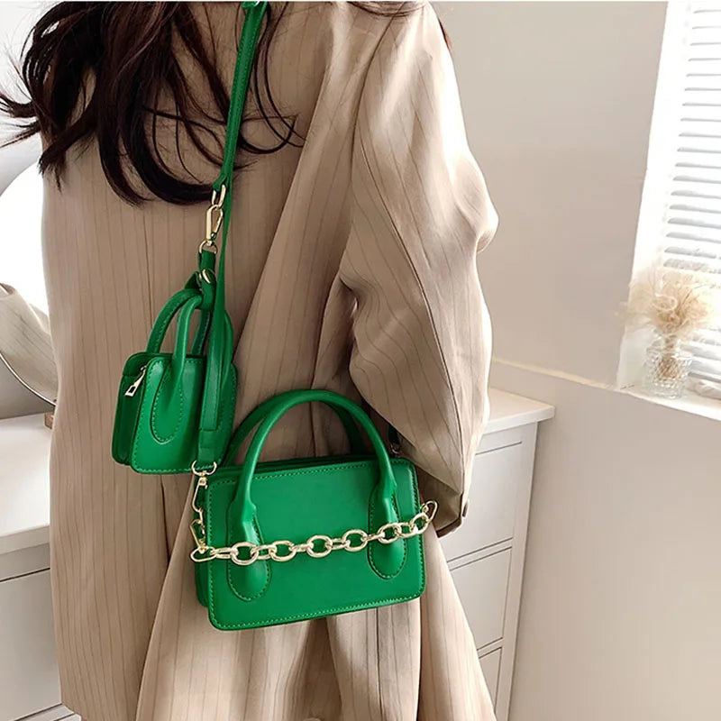 Elevate your style with this chic and versatile crossbody bag. Made of high-quality PU leather with a chain shoulder strap, this tote is perfect for everyday use or special occasions.