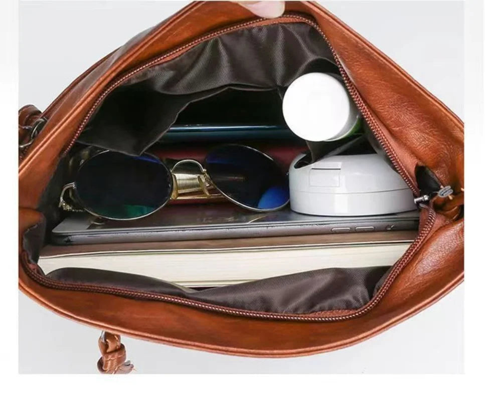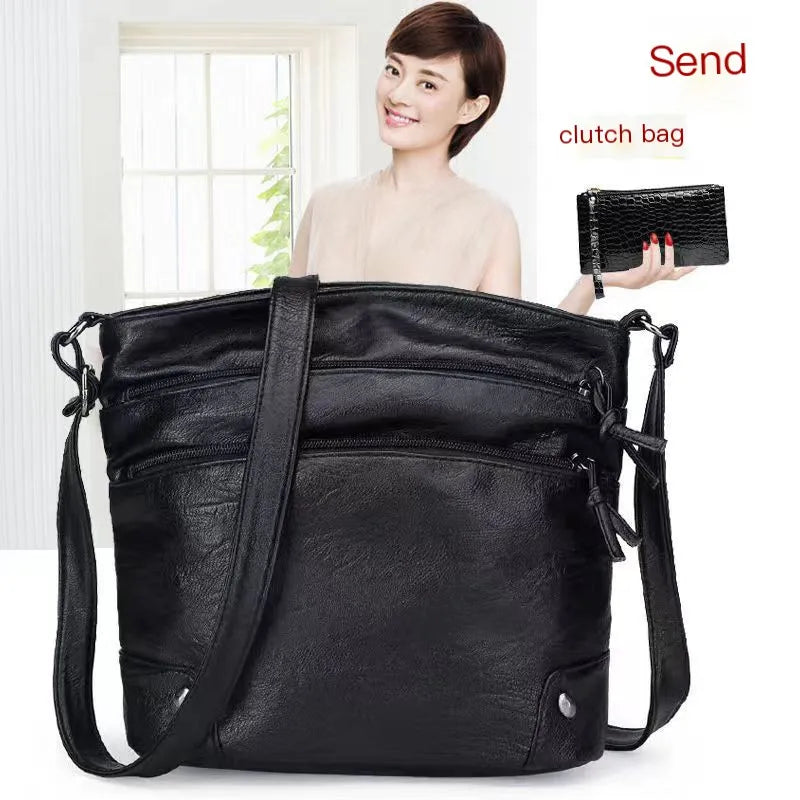 This crossbody shoulder bag is crafted from high-quality soft leather, making it lightweight and comfortable to carry for women on the go.