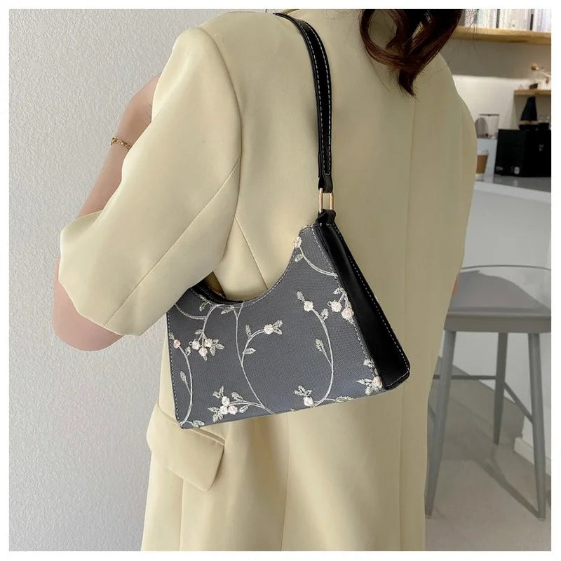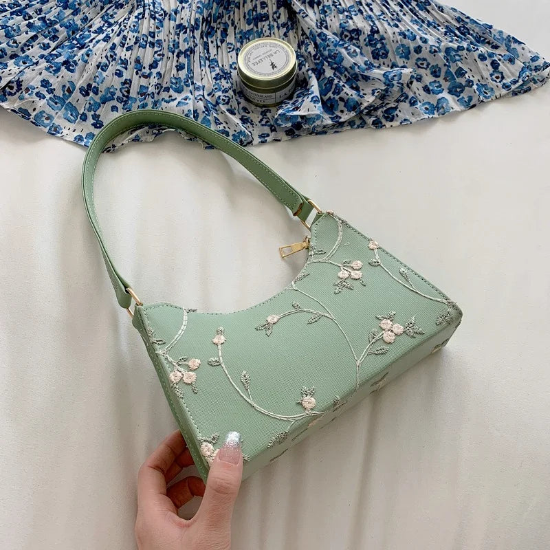 Summer Floral Lace Shoulder Bag for Women Soft PU Leather Underarm Bag