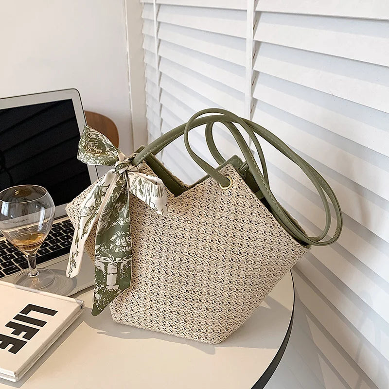 Summer Lace Beach Straw Handbags Large Capacity Hand Woven Totes Shopper Bags
