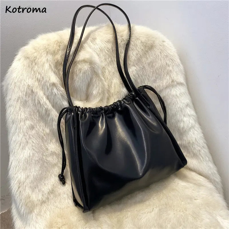Summer Pleated Shoulder Bags Women String PU Leather Soft