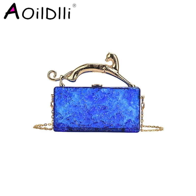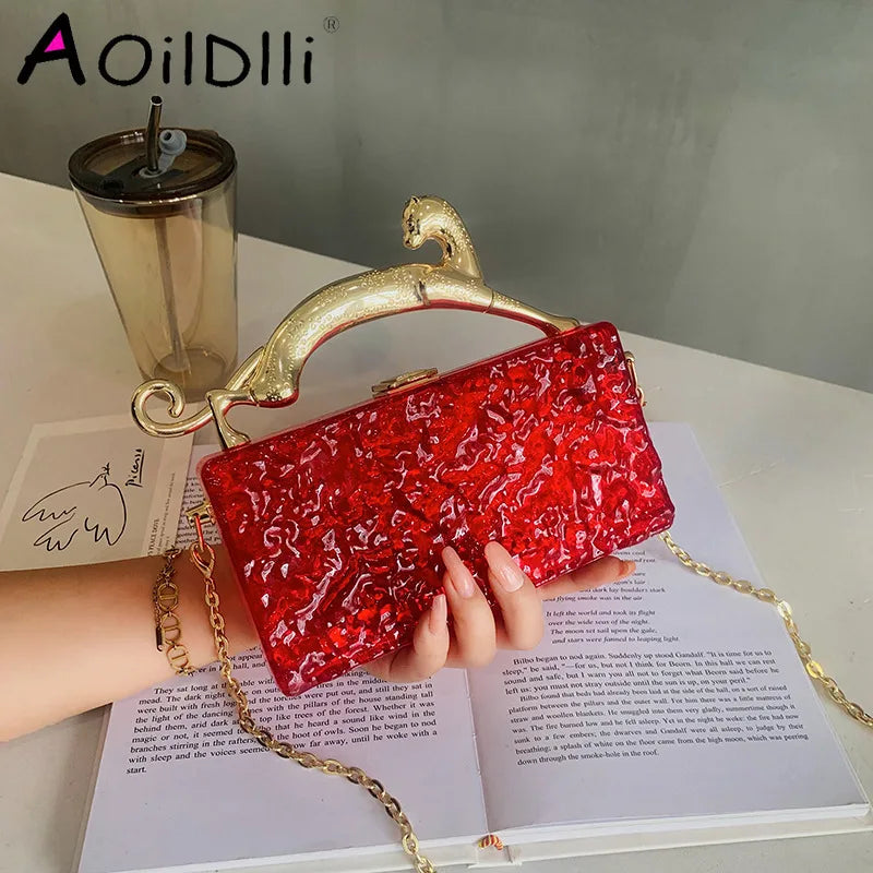 Stay on-trend with this stylish handbag featuring a crack pattern design, made of durable PVC material. The metal leopard acrylic bag adds a touch of sophistication to your outfit.