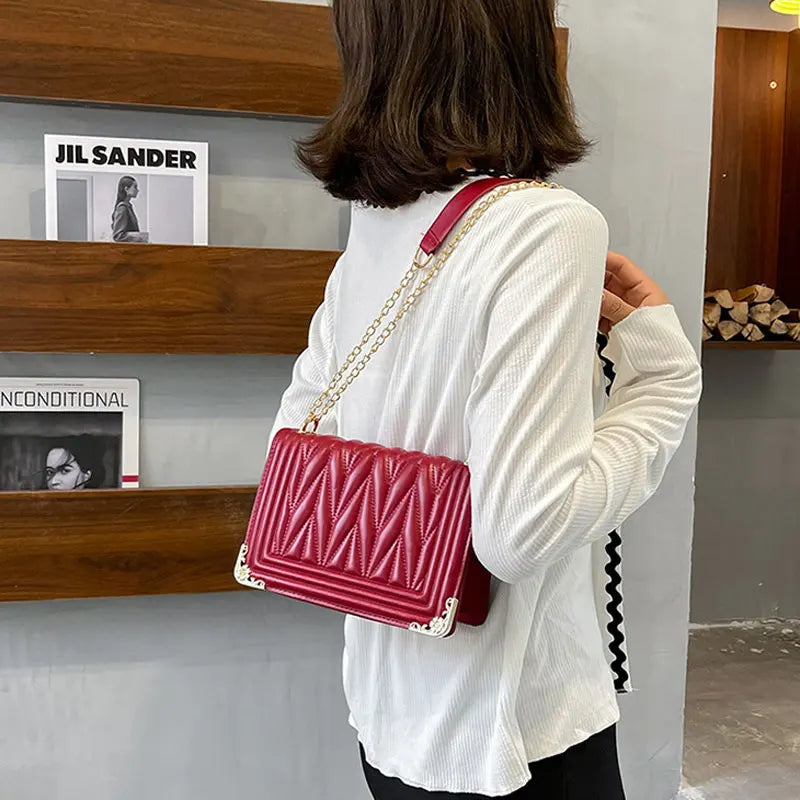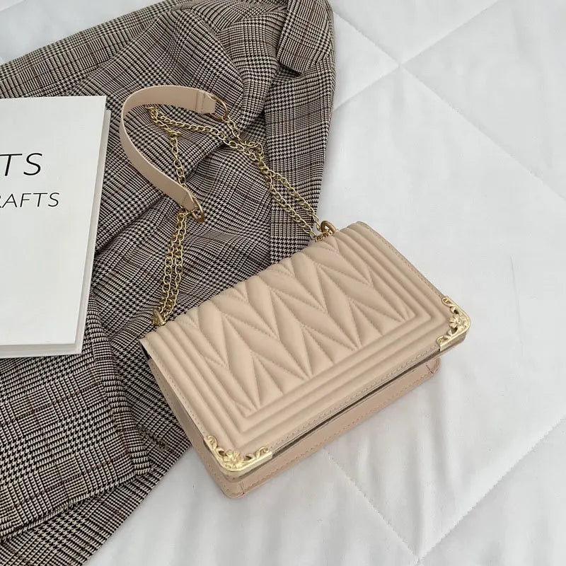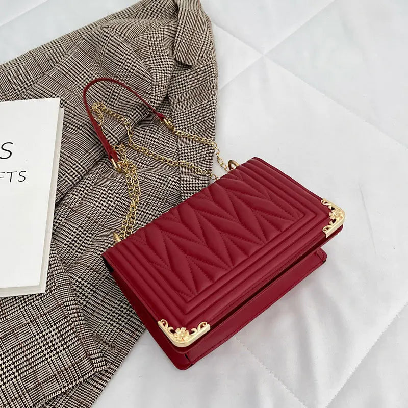 Stay stylish with this summer solid handbag! Made of high-quality soft leather, this small shoulder bag features a chain strap for a chic crossbody look.