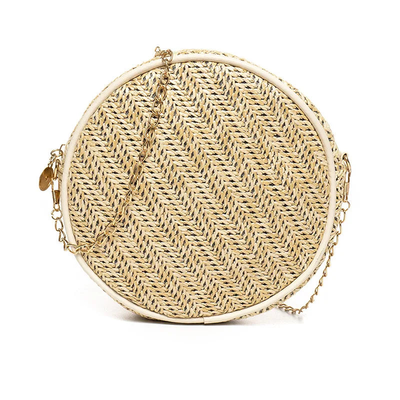 Summer Straw Woven Crossbody Bag Round Shoulder Chains Circle Beach Handbag