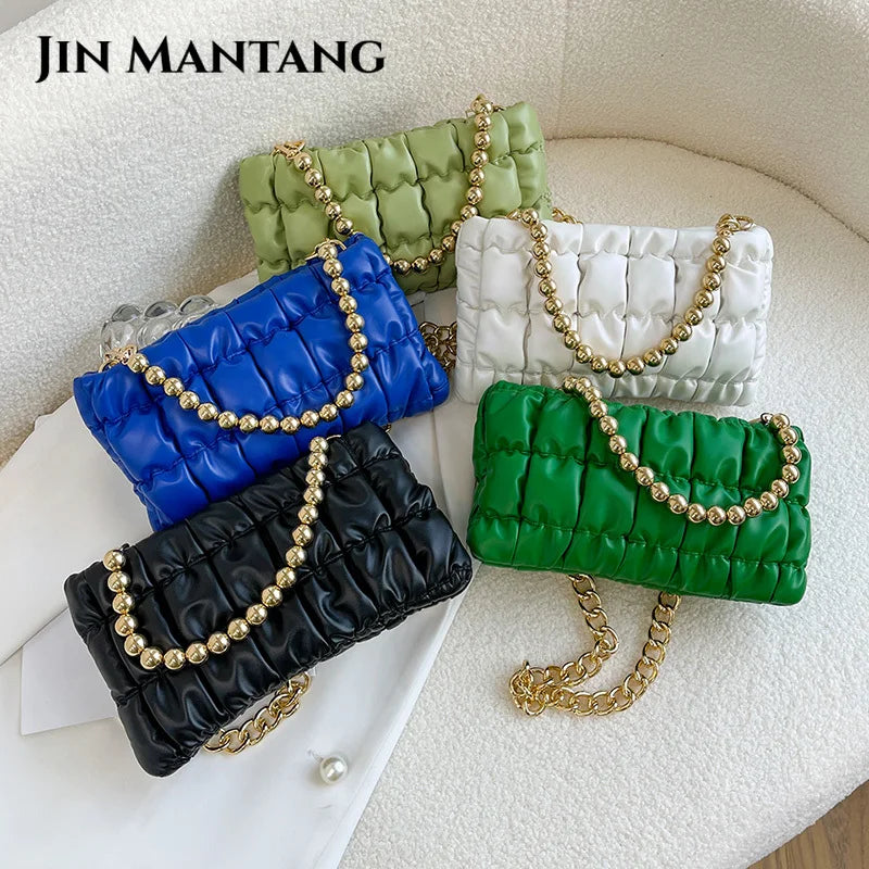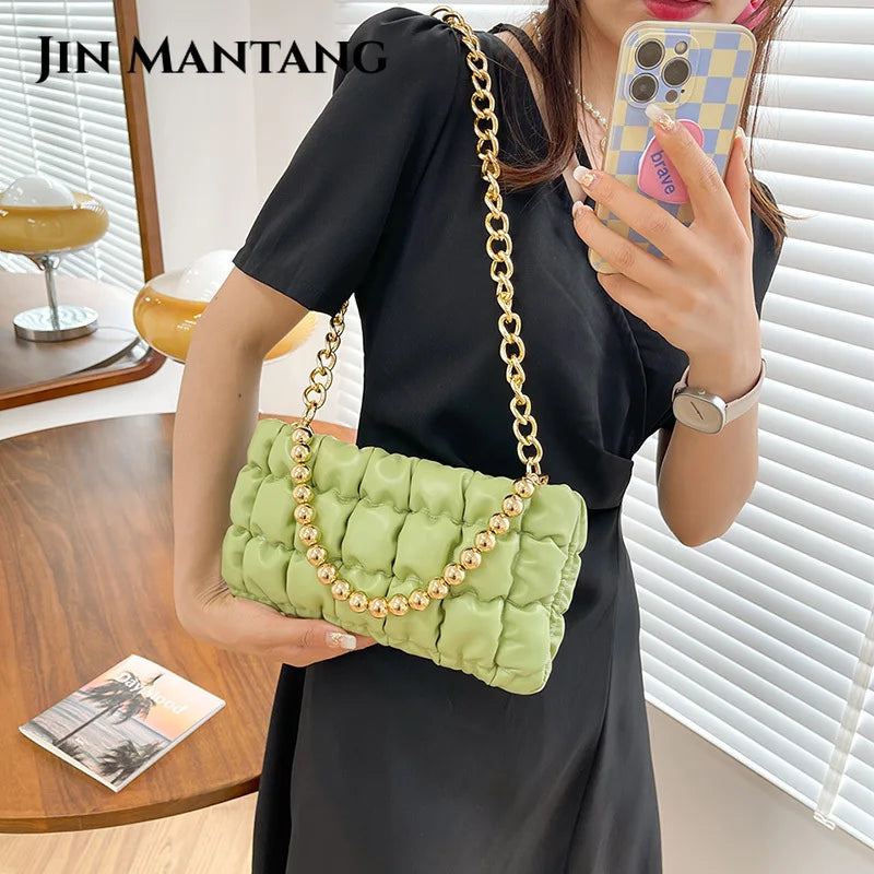 Stay stylish this winter with this PU leather shoulder bag featuring a thick chain strap. Perfect for carrying essentials.