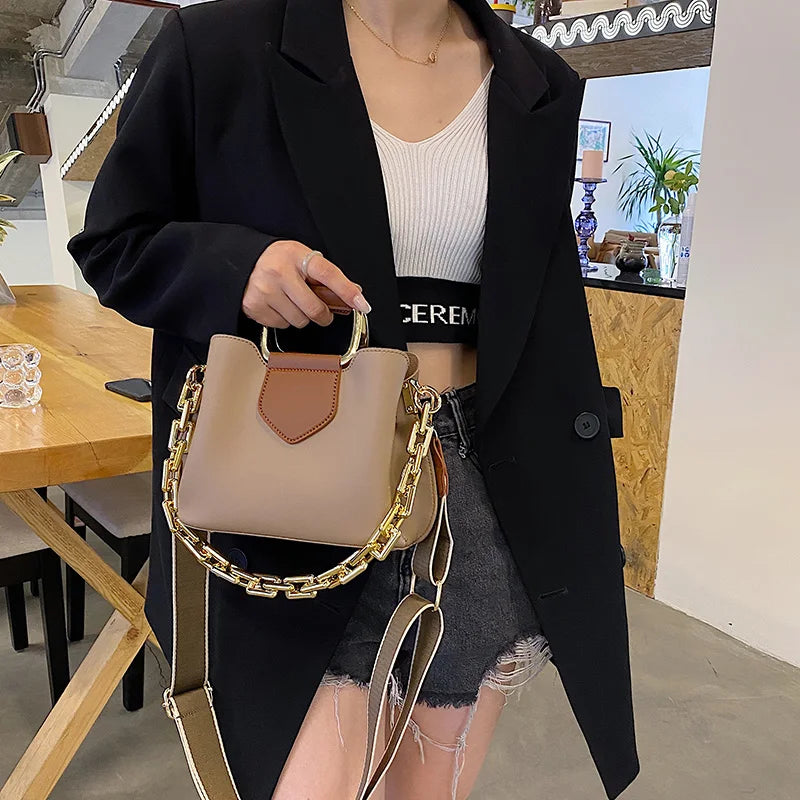 Thick Chain Women's PU Leather Crossbody Bag Short Handle Shoulder Purse Handbag