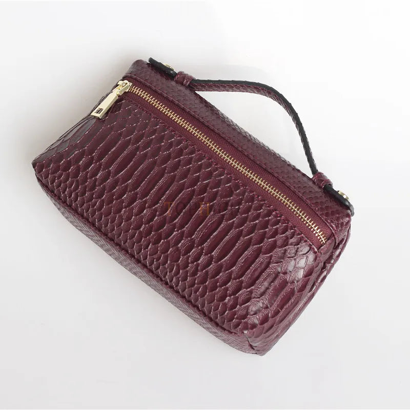 TOPHIIGH Leather Portable Bag For Women Clutch Snake Red Coffee