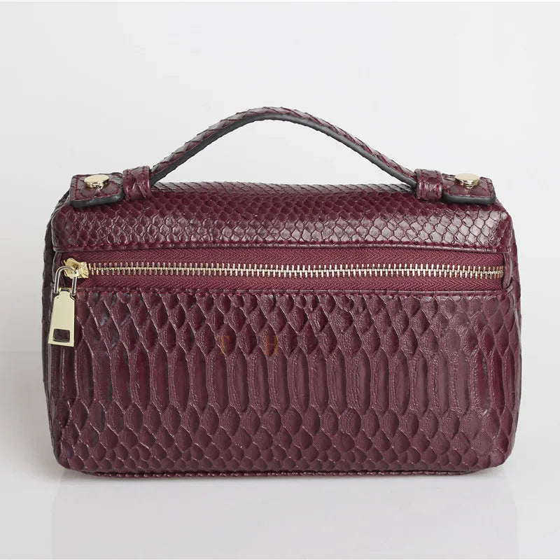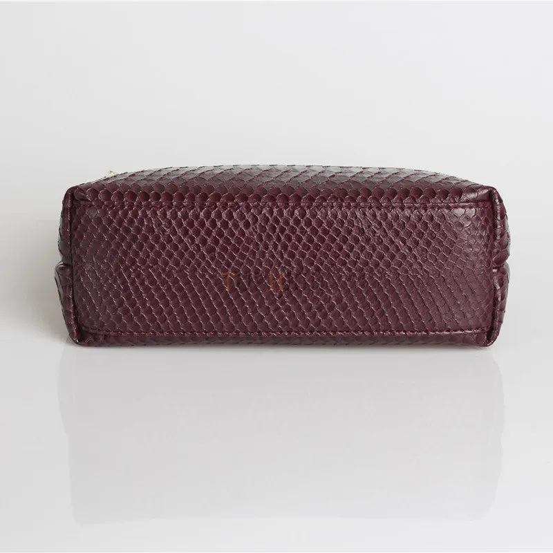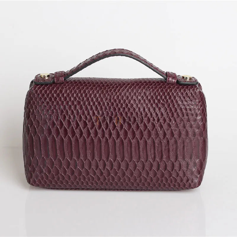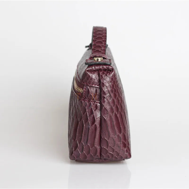 Stay stylish with this trendy leather portable bag for women. The snake pattern design in red coffee is perfect for a night out or special occasion.