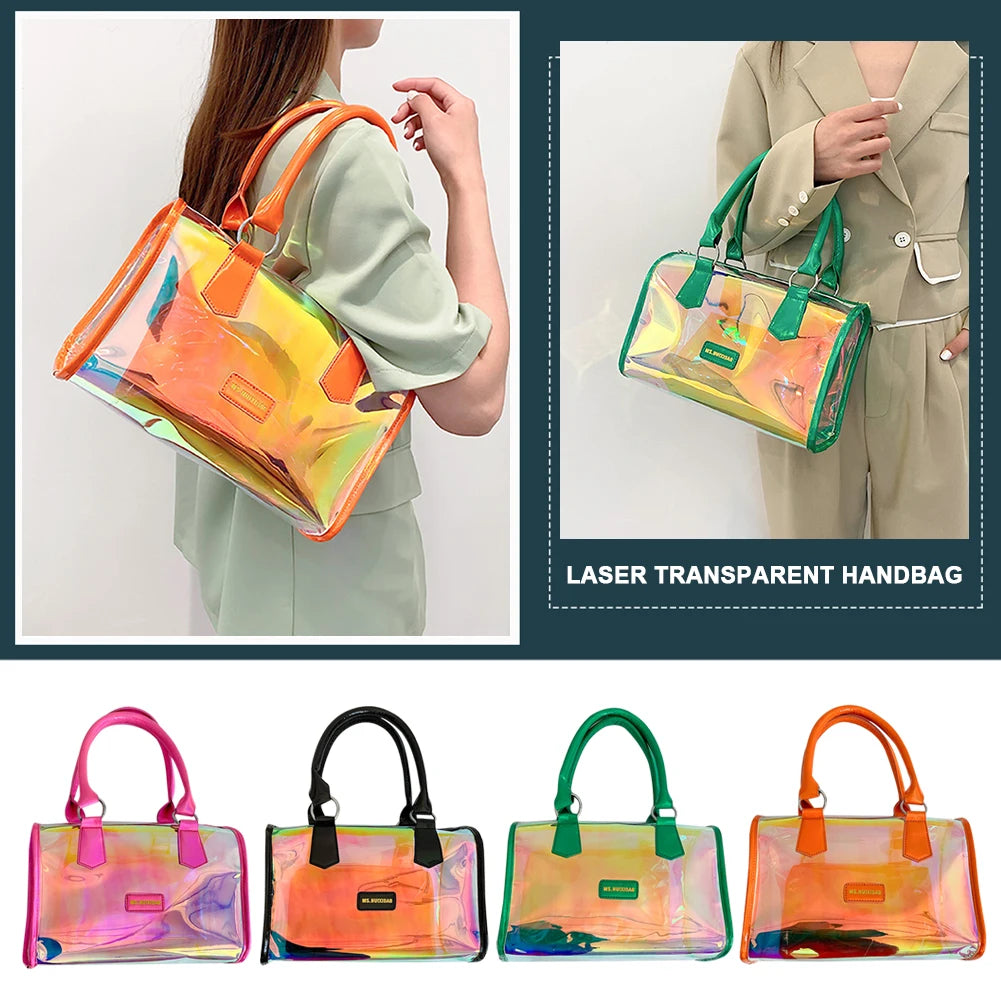 Stay stylish and organized with this laser transparent crossbody bag. Perfect for summer outings, beach trips, and travel.