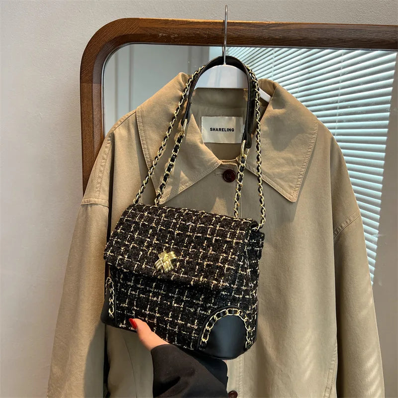 Tweed Weave Plaid Crossbody Bag Chain Flap Shoulder Handbag