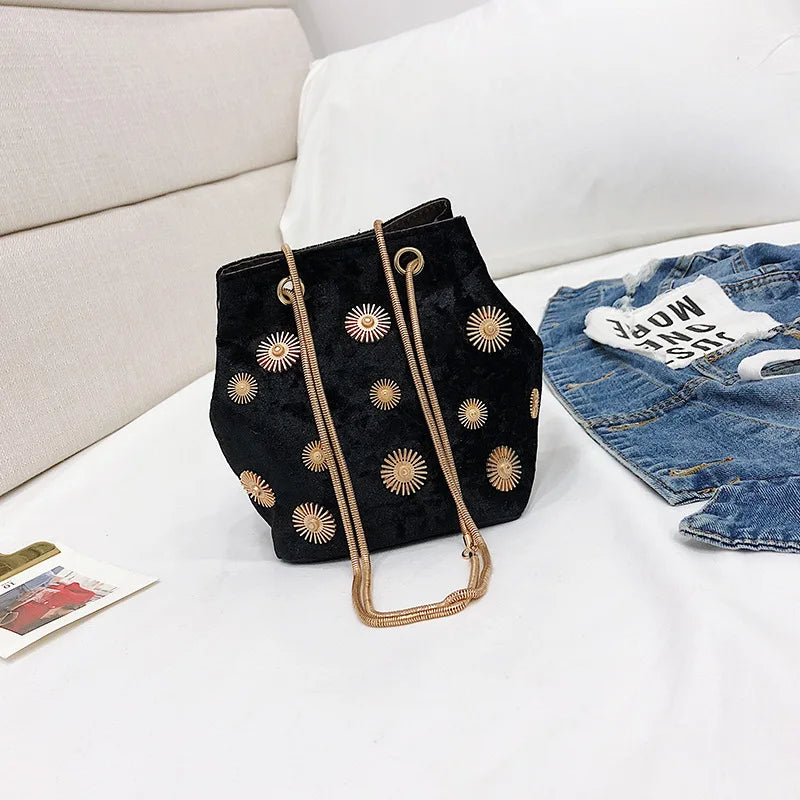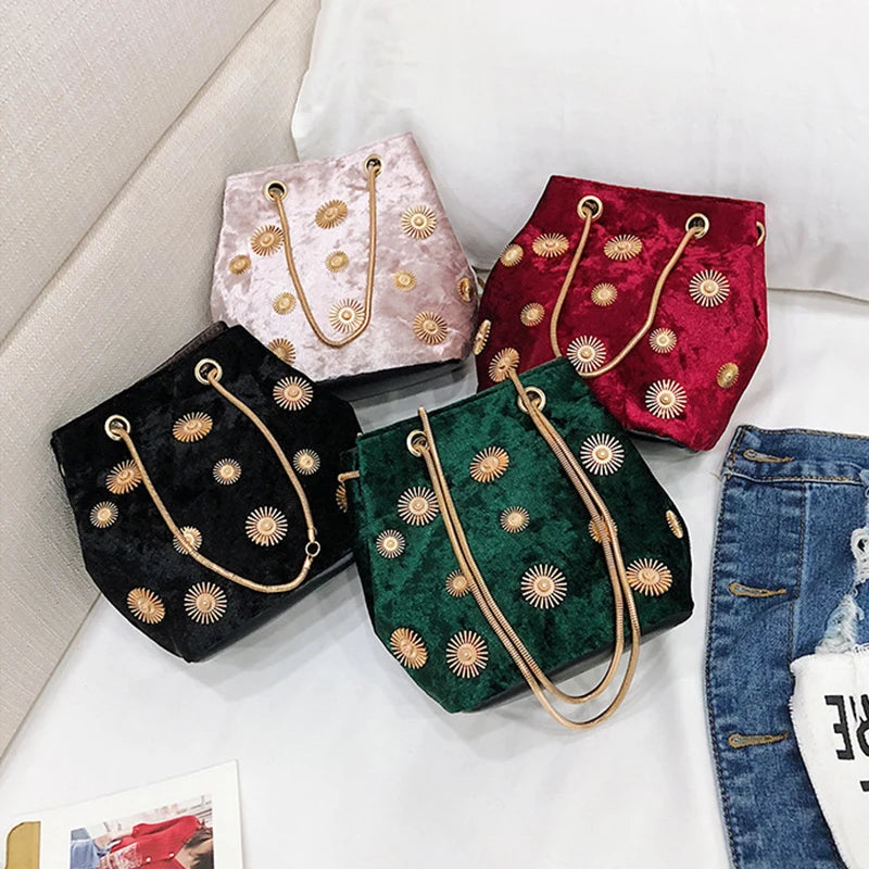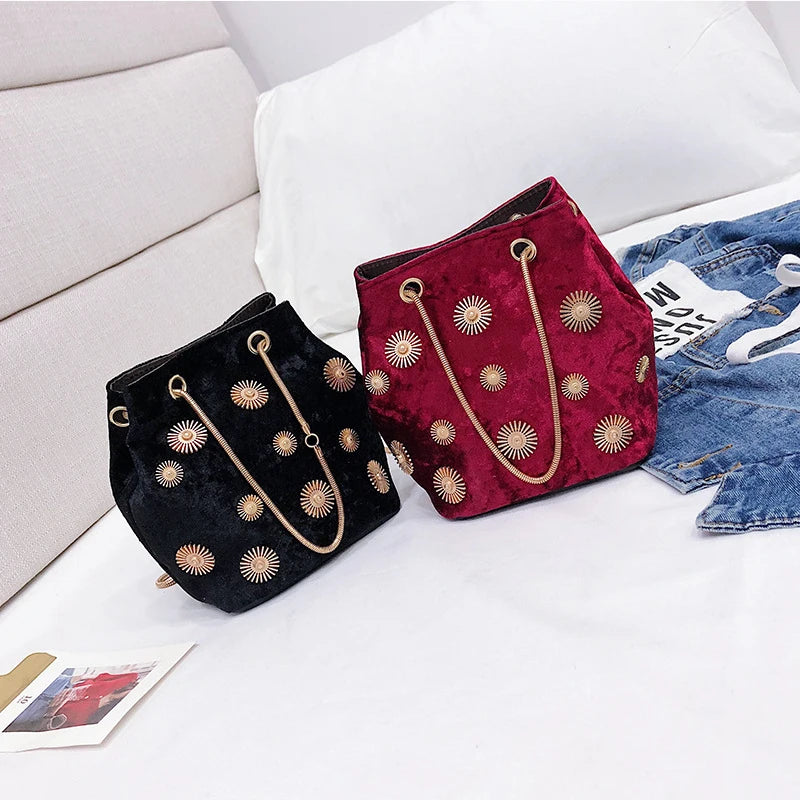Velvet Handbag for Women Girls Shopper Purses Small flower decor