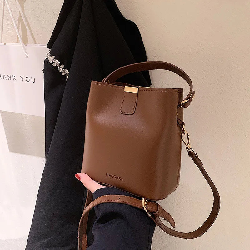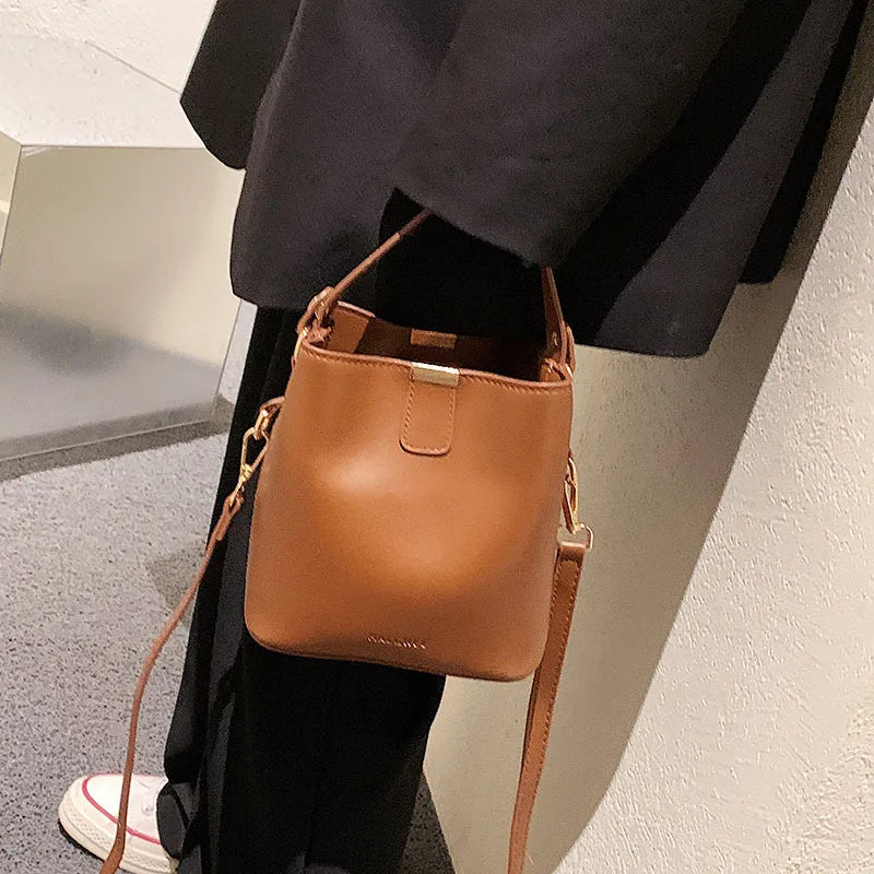 Stay stylish with this vintage bucket bag made of high-quality PU leather. It features a large capacity for all your essentials and can be worn as a shoulder or crossbody bag.