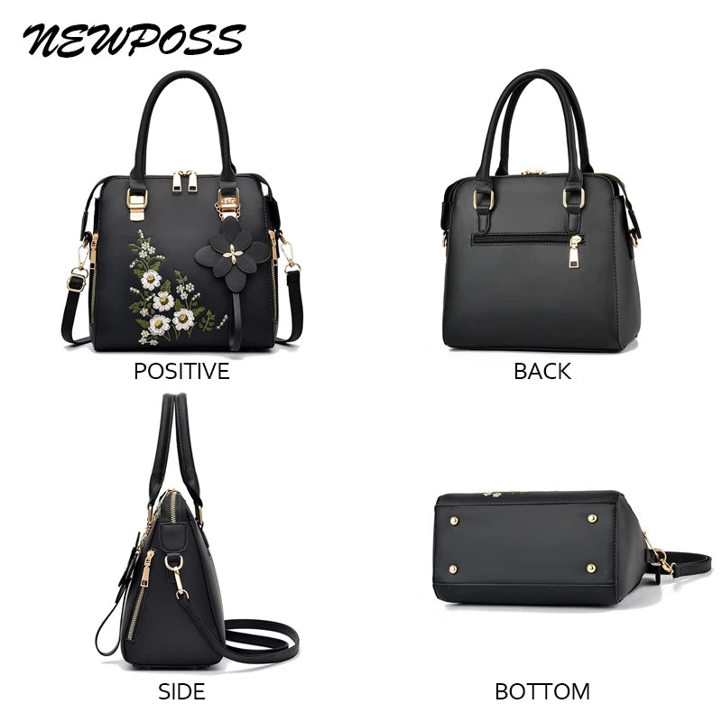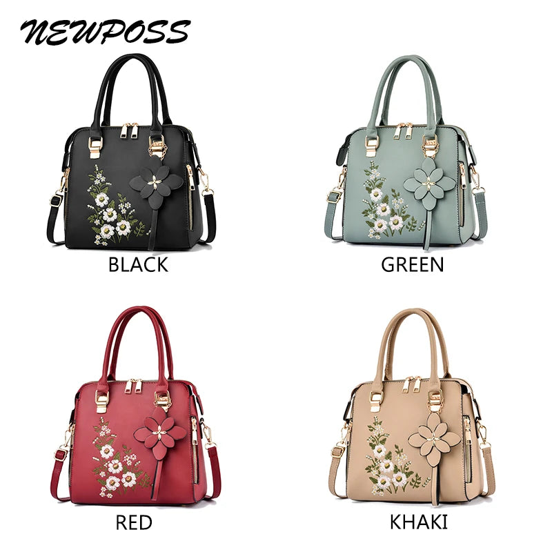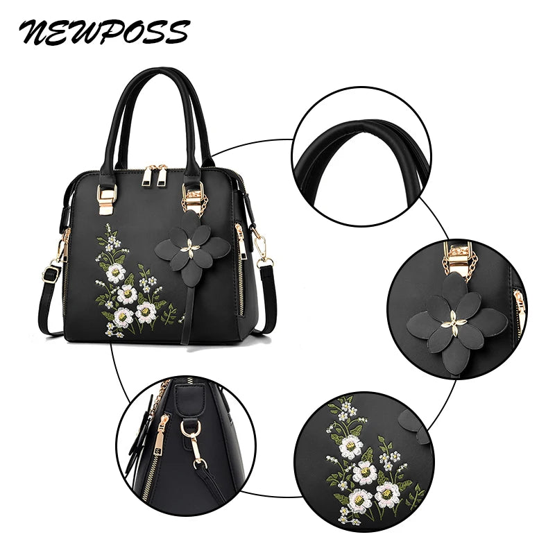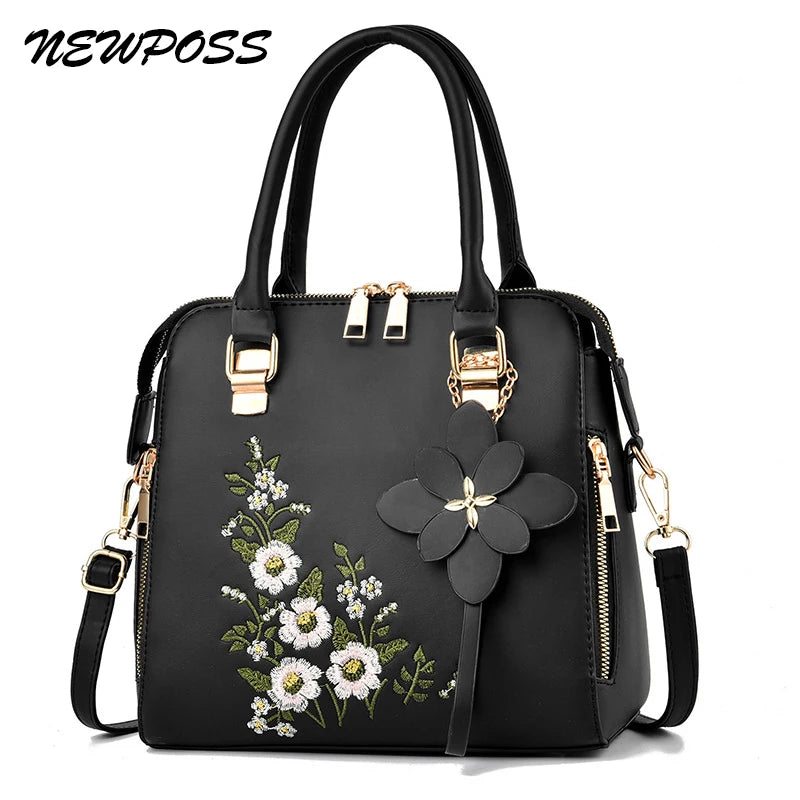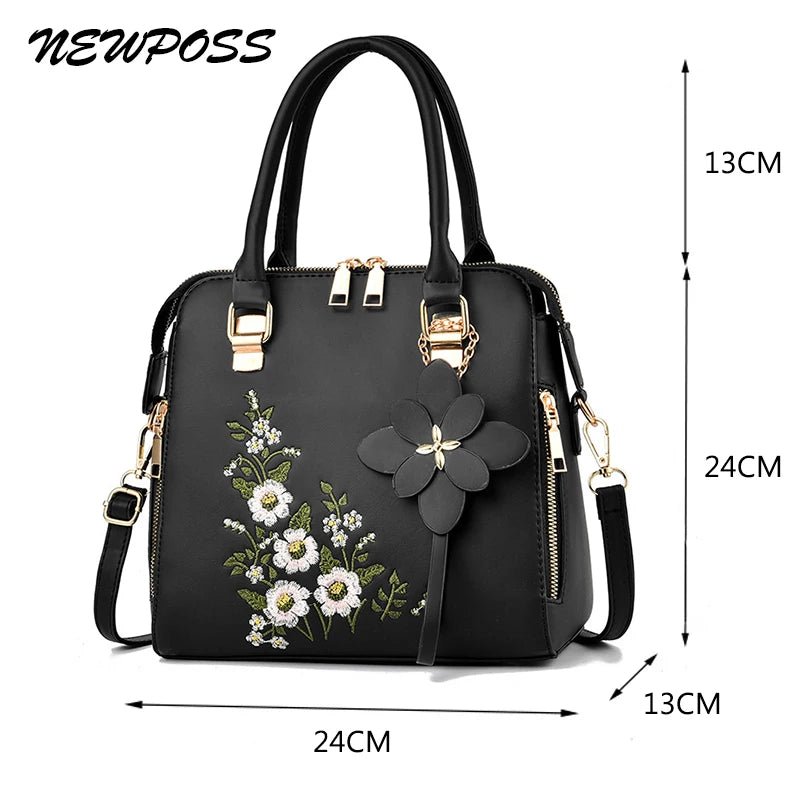 Vintage Embroidery Tote Messenger Bag Leather Purse