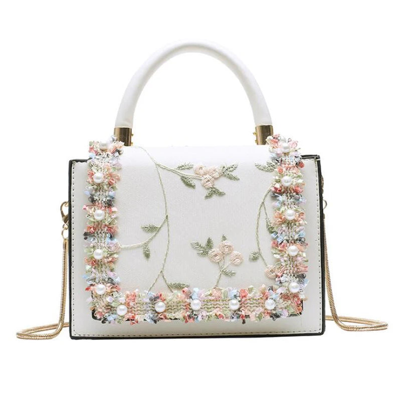 Elegant vintage flower lace handbag perfect for evening events. Features a chain strap for crossbody wear and a stylish design. Ideal for women who love classic and feminine accessories.