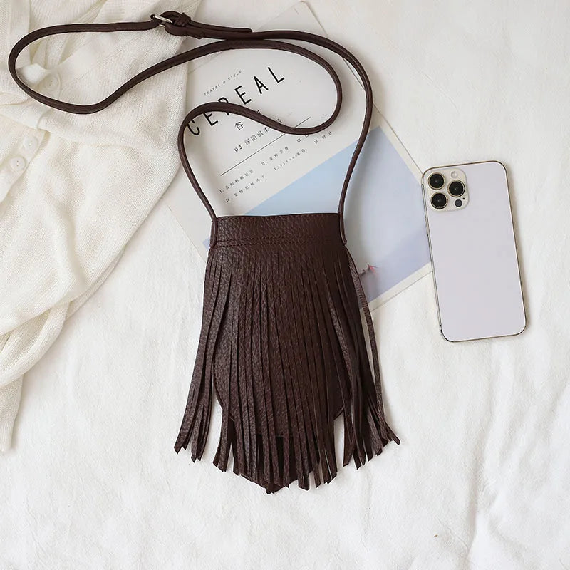 Vintage Fringe Tassel Women's Phone Bag Small Crossbody Bag