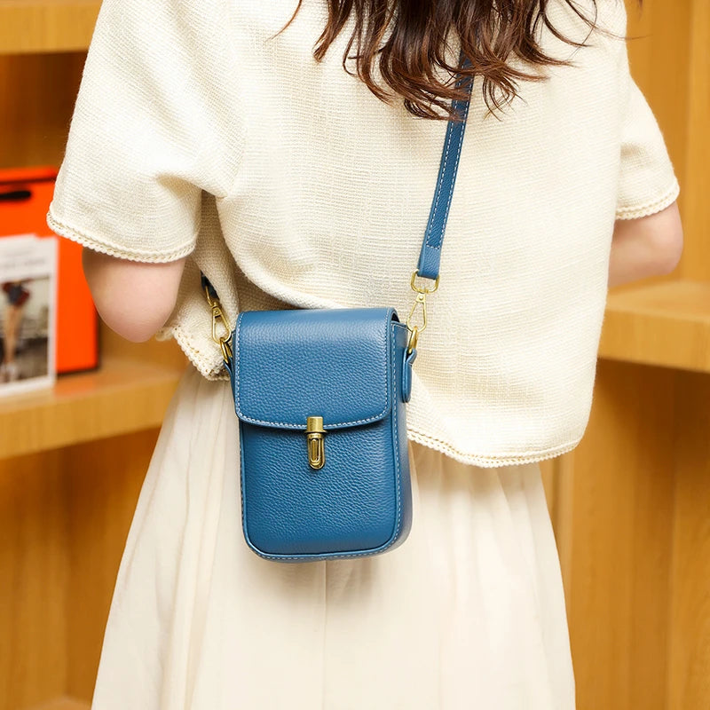 This women's shoulder bag is crafted from vintage leather and features a secure lock design. Perfect for carrying your essentials, this mini crossbody bag doubles as a stylish handbag pouch.
