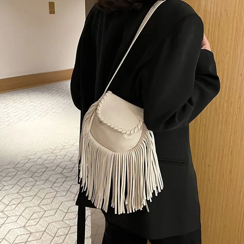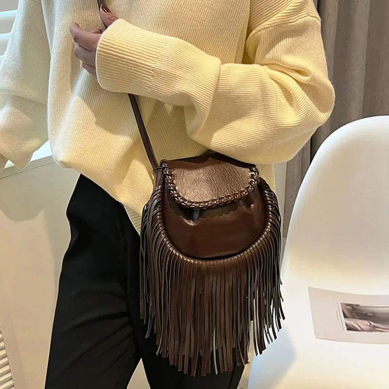 Vintage PU Leather Women Shoulder Bags Fringe Tassel Handbags