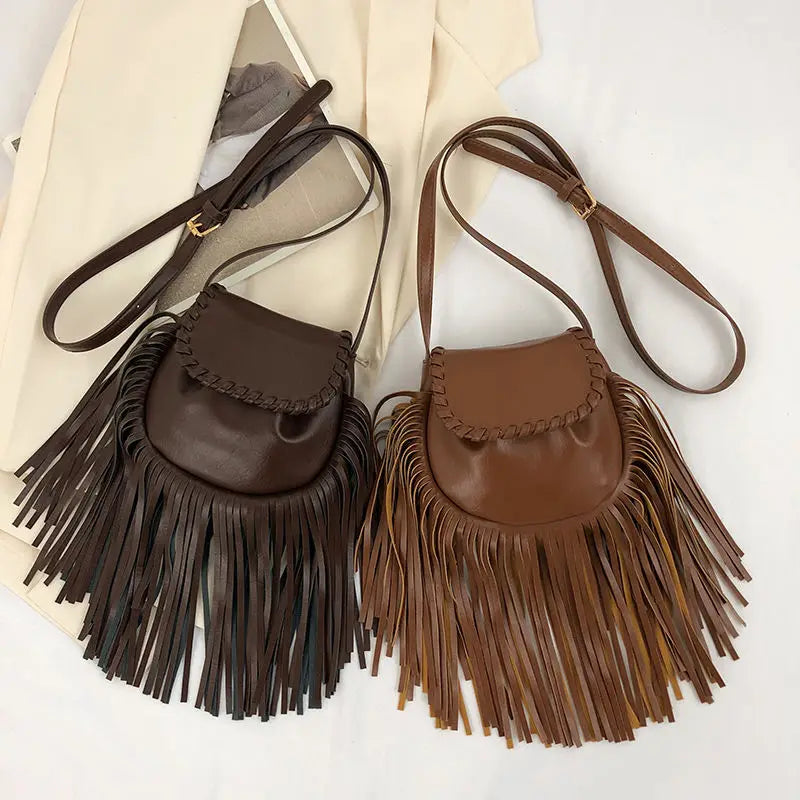 Add a touch of bohemian style with this vintage-inspired women's shoulder bag. Featuring fringe tassel detail and made of high-quality PU leather, this small purse is perfect for everyday use.