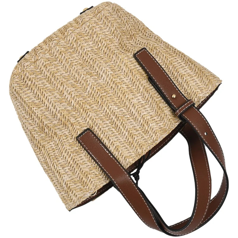 Vintage Retro Beach Bag Straw Rope Knitted Big Messenger Bag