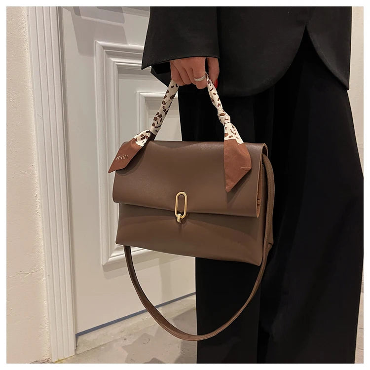 Vintage Silk Scarf Tote Bag PU Leather Women Handbag