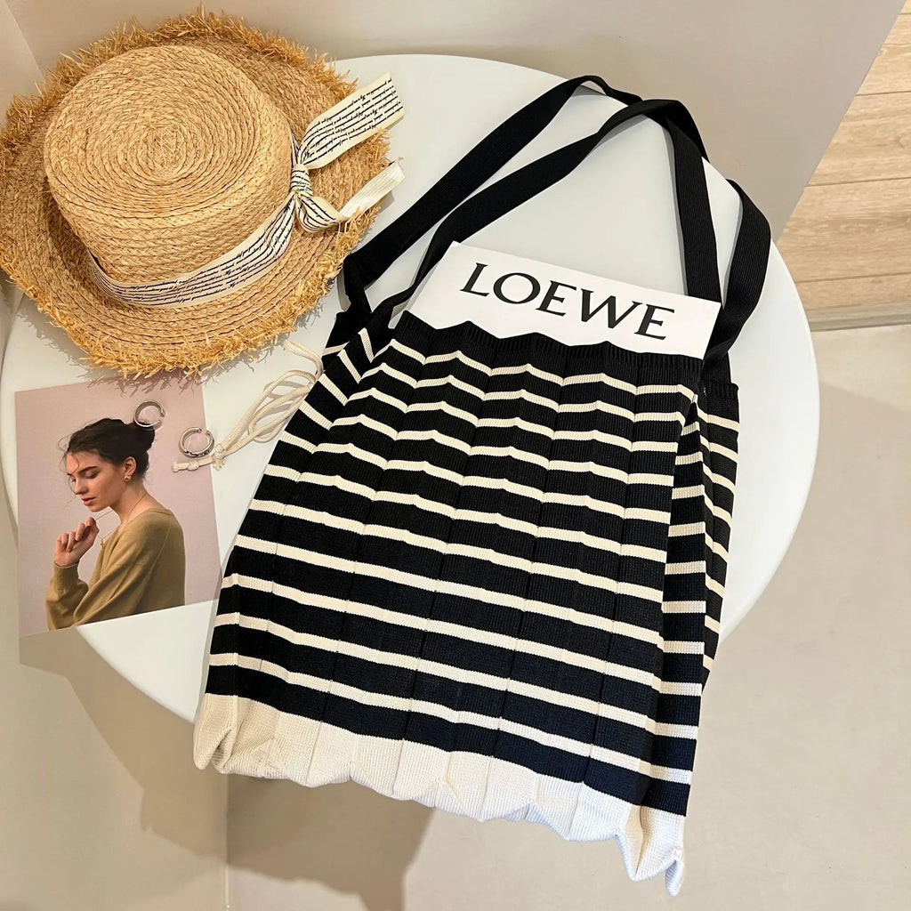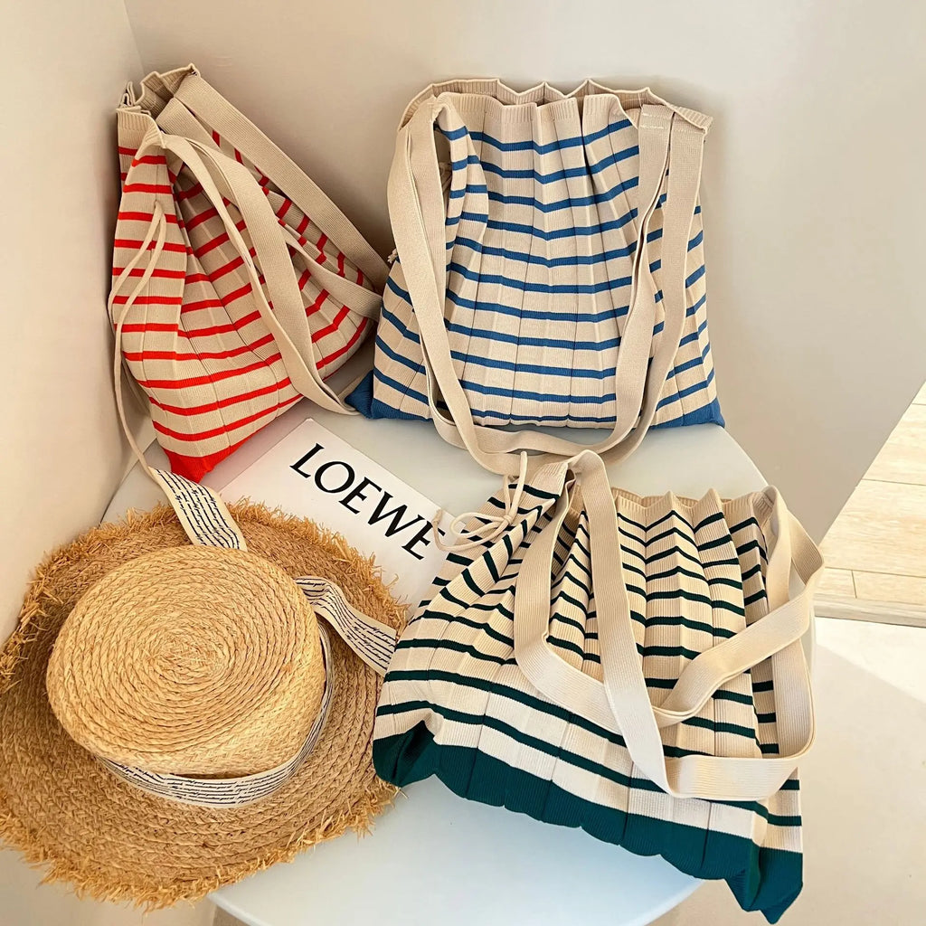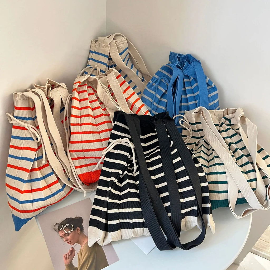 Vintage Striped Shoulder Bag Knitted Foldable Tote