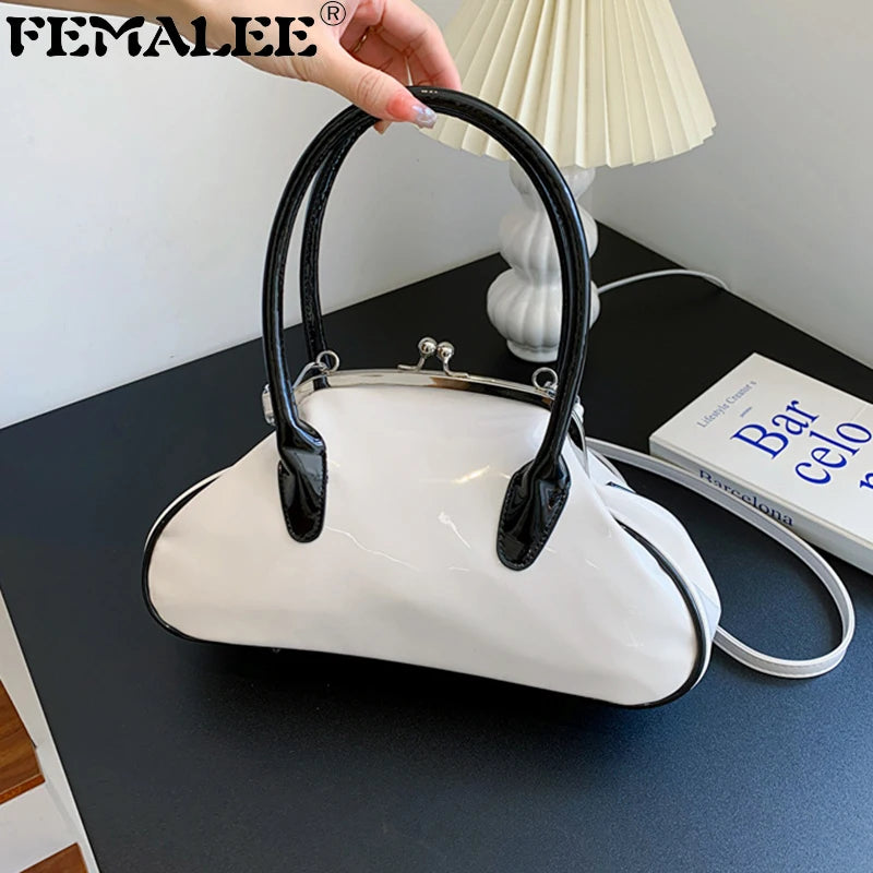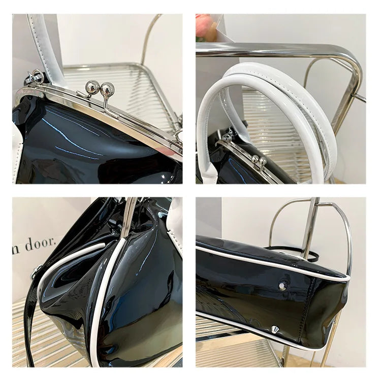 Vintage Women Shell Handbag Kiss Lock PU Leather Clip Bags Female Retro Shoulder