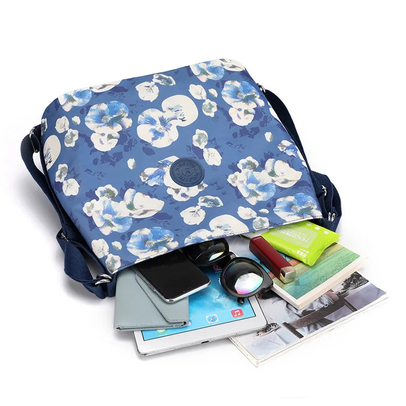 Stay stylish and prepared with this waterproof nylon shoulder bag. Perfect for everyday use, featuring a trendy printed design and convenient zipper closure.