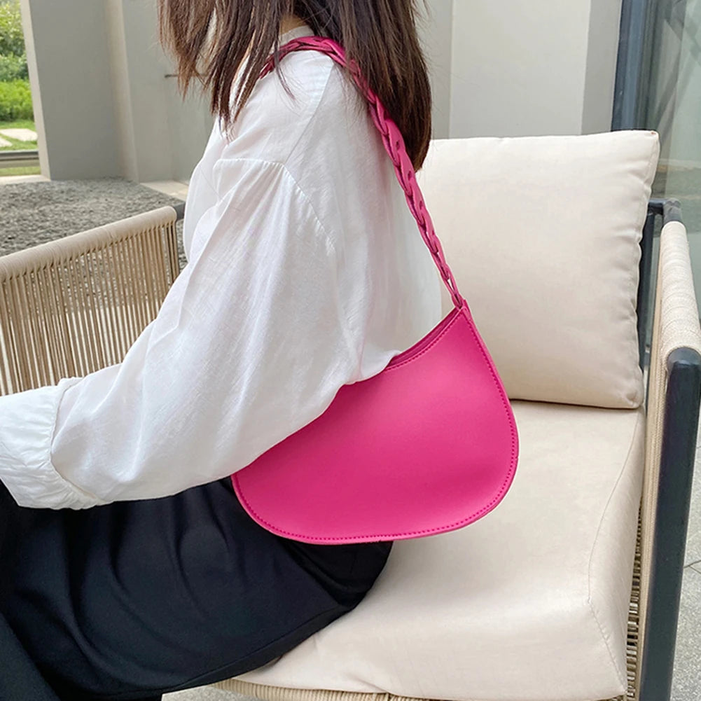 Stay stylish with this shoulder bag crafted with a unique weaving handle design. Perfect for shopping or everyday use, this handbag is both trendy and functional.