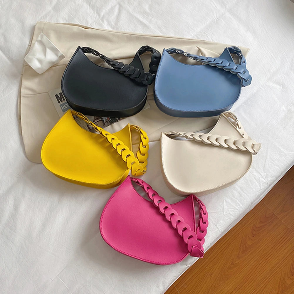Weaving Handle Shoulder Purses Solid Handbag Women Shopping Bags