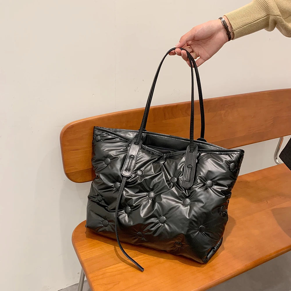 Winter Down Bags Feather Space Cotton Padded Handbags Women Solid Quilted Bucket